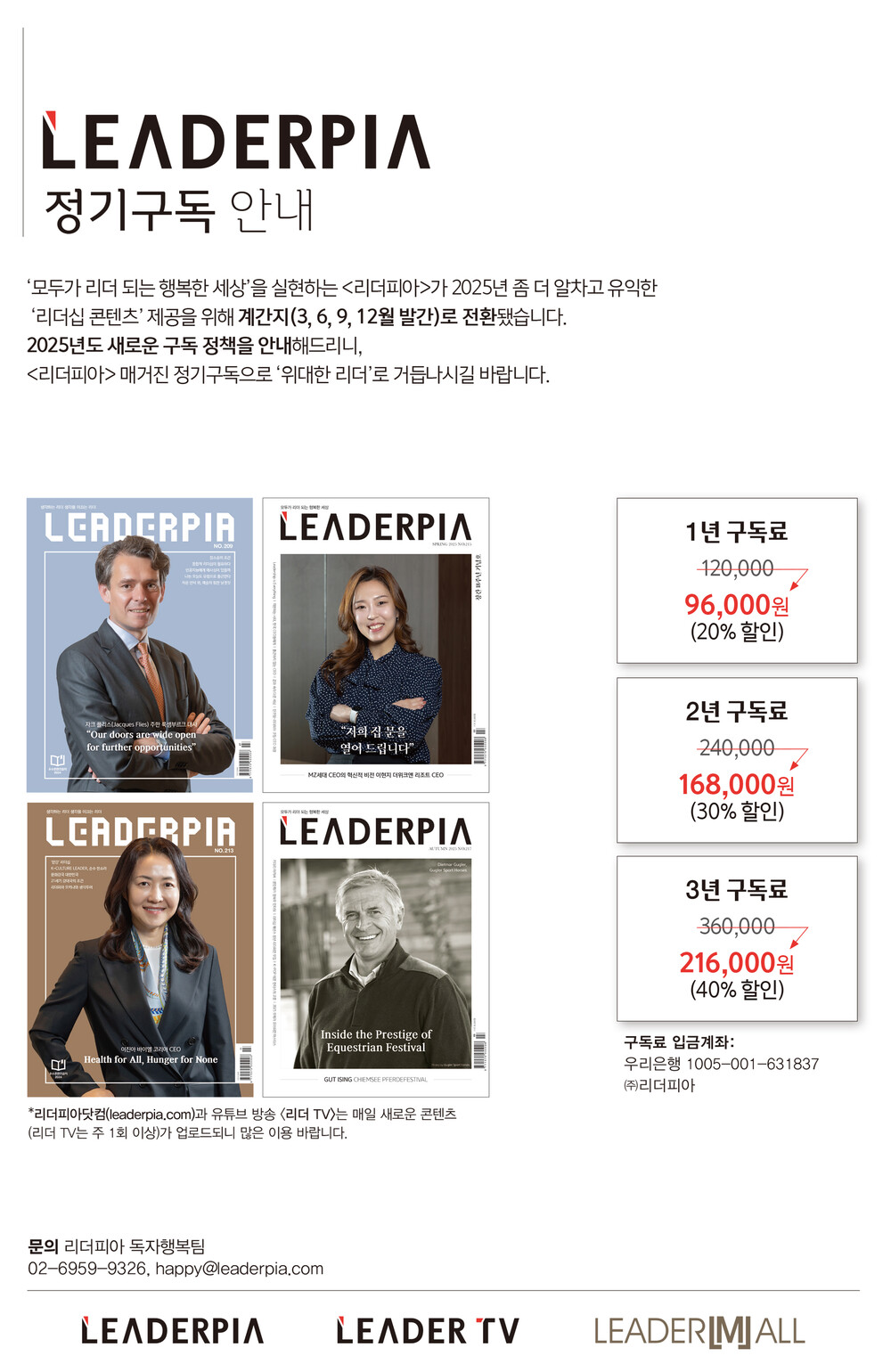 "3년 정기구독 시 40% 할인, 216,000원"