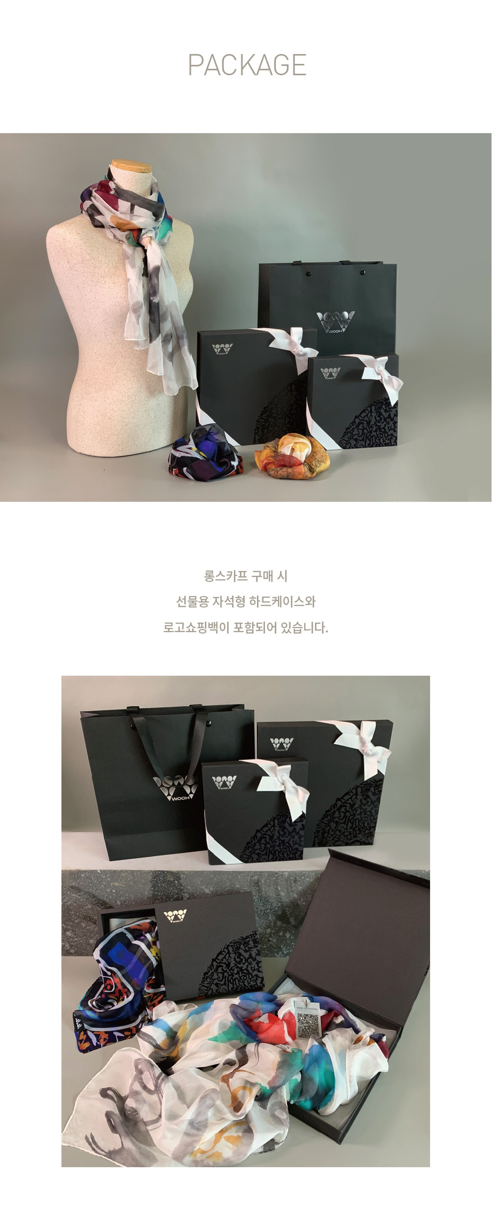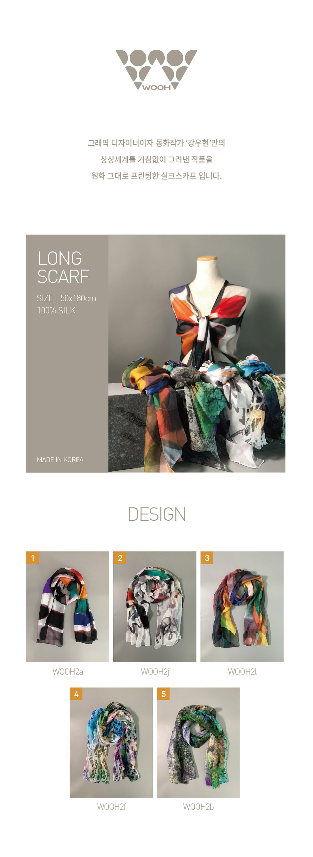 직접 제작한 프리미엄 실크 스카프 시리즈