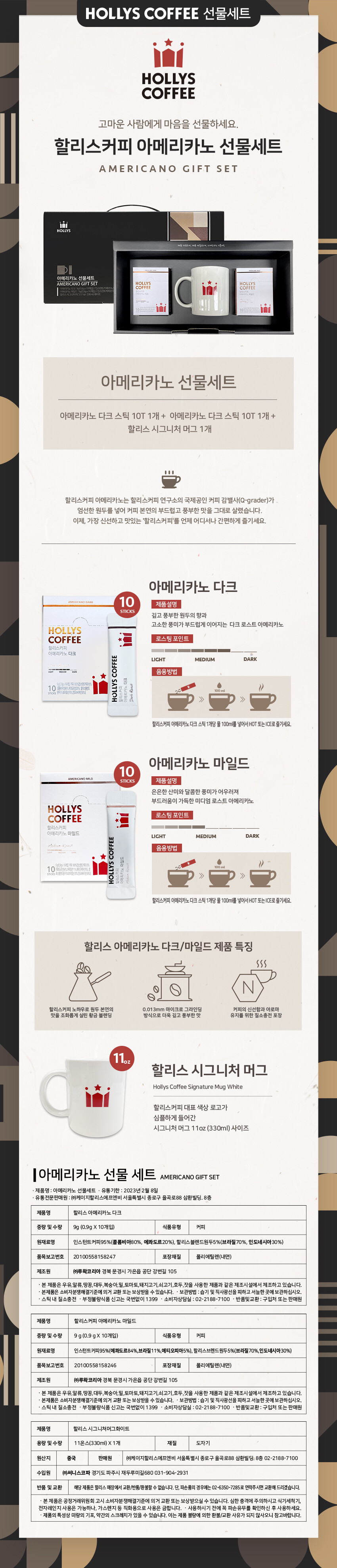 할리스 아메리카노 선물세트 (다크10T+마일드10T+할리스 시그니쳐 머그컵)