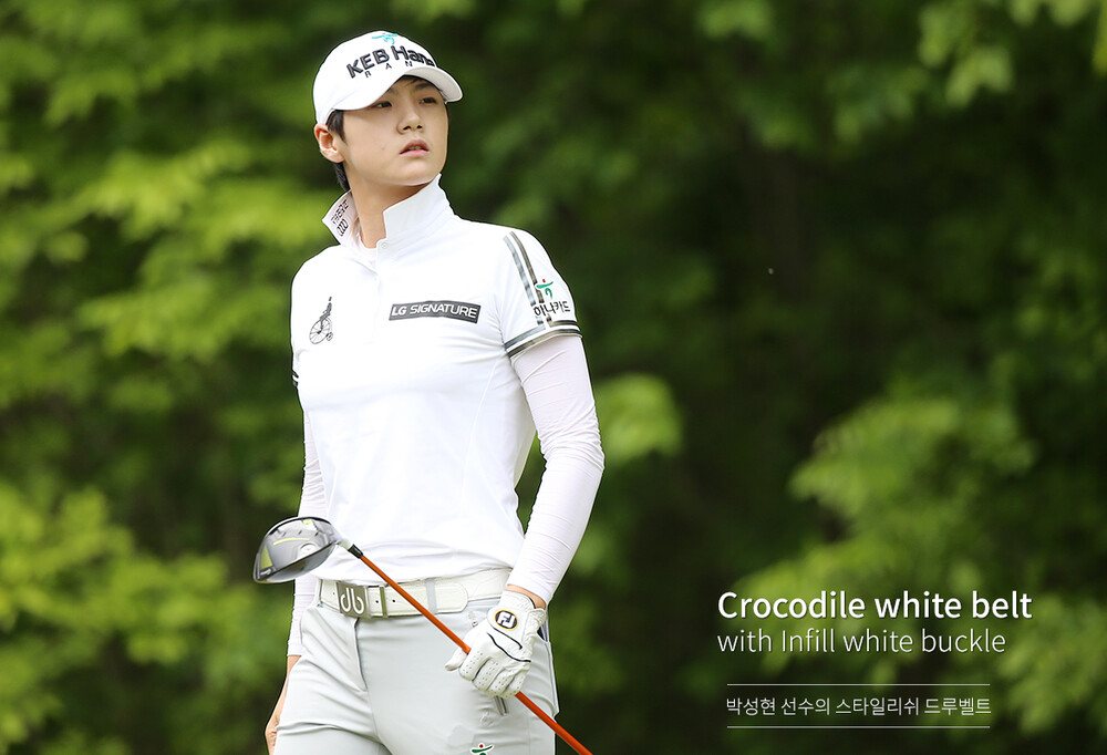 [박성현 벨트] 화이트 악어 골드스루 벨트 세트