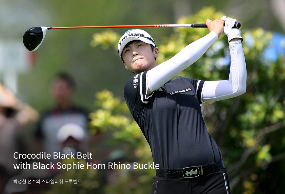 [박성현 벨트] 블랙 악어 블랙화더블스루 벨트 세트